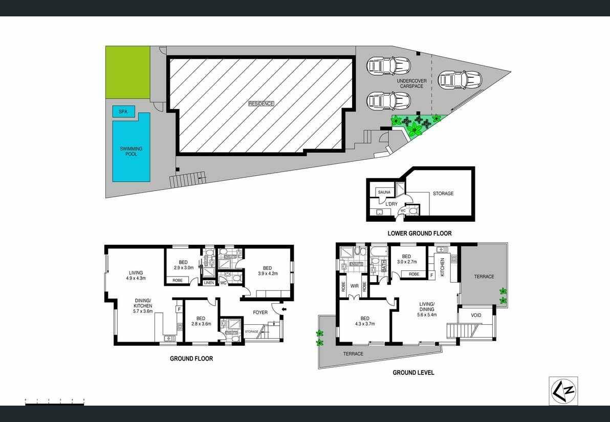 At the rear of the home, you'll find a private north-facing terrace, a low-maintenance garden area, and a heated in-ground swimming pool with spa, perfect for outdoor entertaining. The home also features integrated automation and technology systems, including C-Bus lighting, motorized blinds, external shutters, ducted air conditioning, underfloor heating, and solar power.